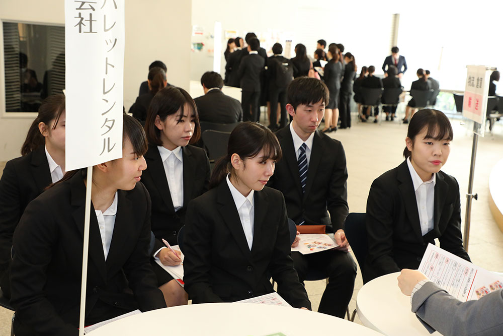 大正大生を積極採用する企業が来校し、学生への業界研究・会社説明を行います。また、「企業人事担当者による模擬面接指導会」を行い、就職試験本番を想定した緊張感の中で面接練習を行います。