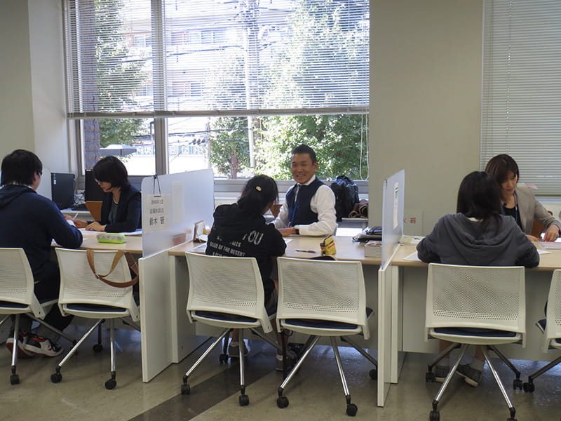 学内に設けられた個別相談ブースでの対面相談はもとより、テレビ会議を用いたオンライン相談や、メールでの応募書類添削などの相談も取り入れています。