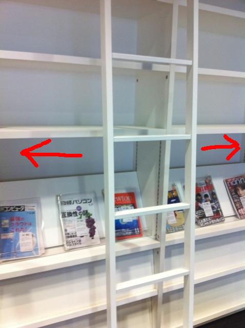 おまけ:書架のハシゴは可動式です。「読みたい本が取り出しにくい」「上のほうにある本が取りたい」という場合は、ハシゴを左右にゆっくりとスライドさせてみてください。くれぐれも左右の安全確認をお忘れなく~。