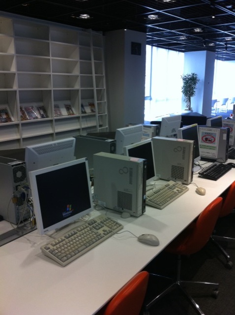 パソコンエリアは夕方になると混雑してくるようです。周囲の状況を見て、満席の際は譲り合いの精神でお願いします。長時間離席するようであれば、一度シャットダウンして他の人が席を使えるようにして頂けると助かります。ひとりでじっくりパソコンを使いたい場合は、なんと言っても午前中、それも1限目の授業中がおすすめ!