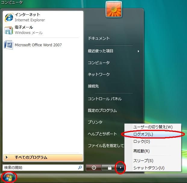 ロックは作業中の内容が保持されますが、ログオフは作業中の内容はいったんすべて終了されます。状況に応じてロックとログオフを使い分けてください。
