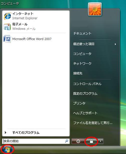 3.ダイヤログの中から[コンピュータのロック]をクリックすると画面がロックされます