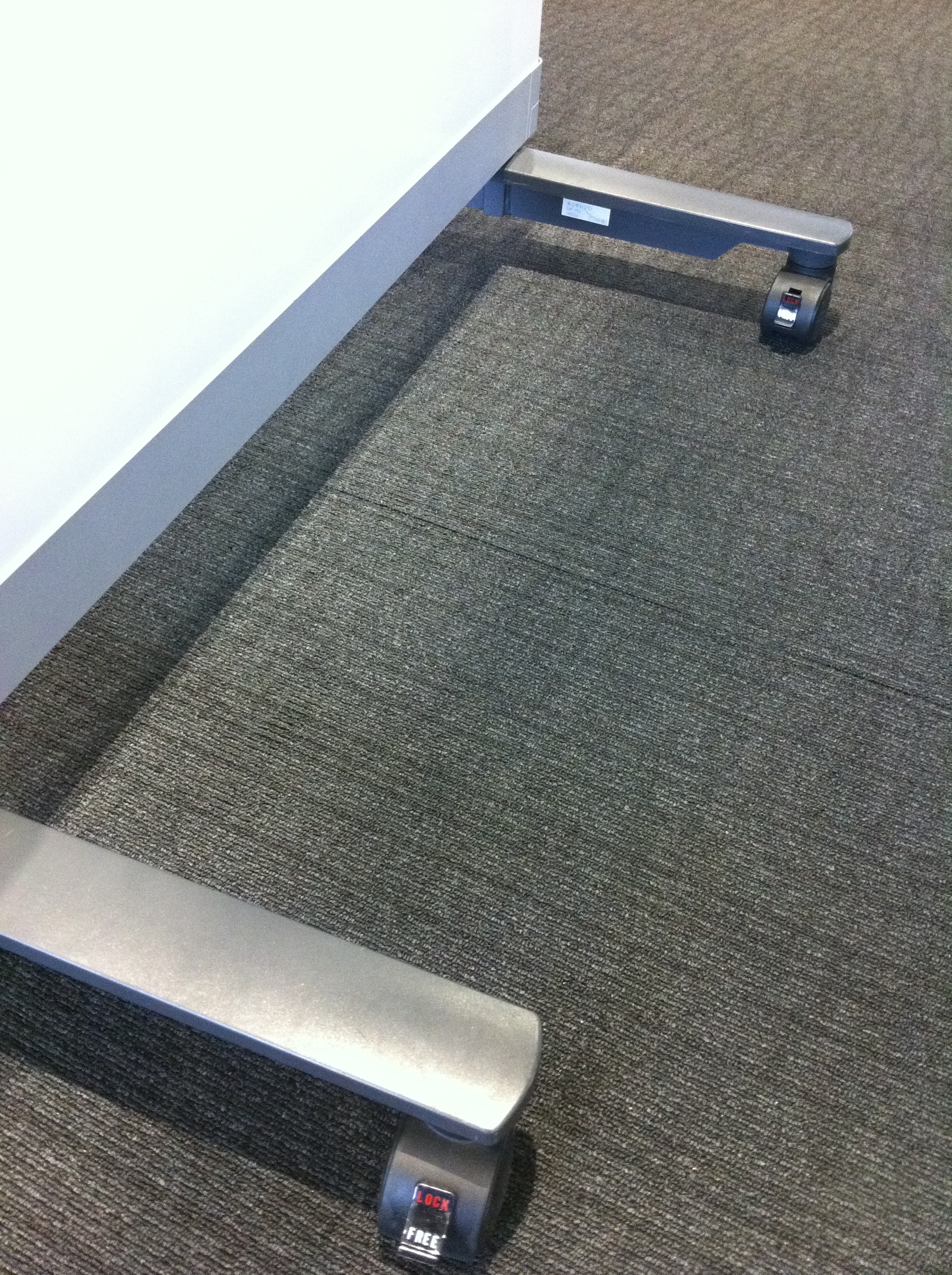 キャスターがついてますね。このキャスターには、それぞれ「FREE」と「LOCK」のスイッチがついています。移動するときは4つのスイッチをすべて「FREE」にして、設置場所が決まったらすかさず「LOCK」!これでグラグラせずに安全にホワイトボードを利用できますよ。