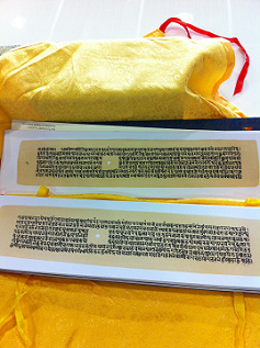 ▲サンスクリット語版の維摩経(複製)と各種参考資料