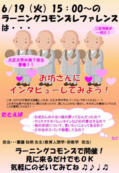 気になるインタビュー結果は、次回以降のラーニングコモンズレファレンス(教育人間学・宗教学)の時間を使って『美微坊主図鑑』(←「美」しくて「微」(まだ修行中なので、少しだけ)「坊主」の「図鑑」、の略)として取りまとめる予定だそうです。図鑑が完成したらこのブログを通じて公開しますので、どうぞお楽しみに!