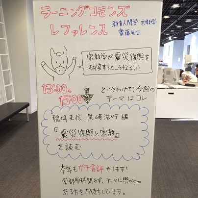 齋藤先生はトータル二年近くに渡ってラーニングコモンズレファレンスをご担当くださいました。長い間本当にどうもありがとうございました。時に楽しく時に厳しい齋藤先生のご指導は、学生さんたちの心をぐっとつかんで離さない魅力に満ちていました。先生のお話を通じて、改めて学問の面白さに触れた学生さんも多かったのではないかと思います。