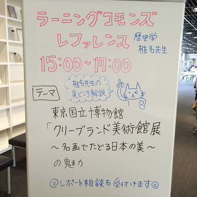 ラーニングコモンズレファレンスの前半は、東京国立博物館で2/23(日)まで開催されている特別展「東京国立博物館『クリーブランド美術館展~名画でたどる日本の美~』の魅力」を紹介していただきました。