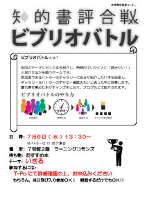 次回の知的書評合戦ビブリオバトルについてご案内いたします。