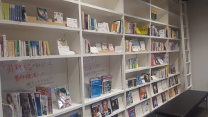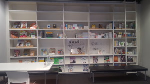 まずはコンシェルジュデスク(普段学習サポーターが座っているところです)側から入ってすぐの本棚がこちら。