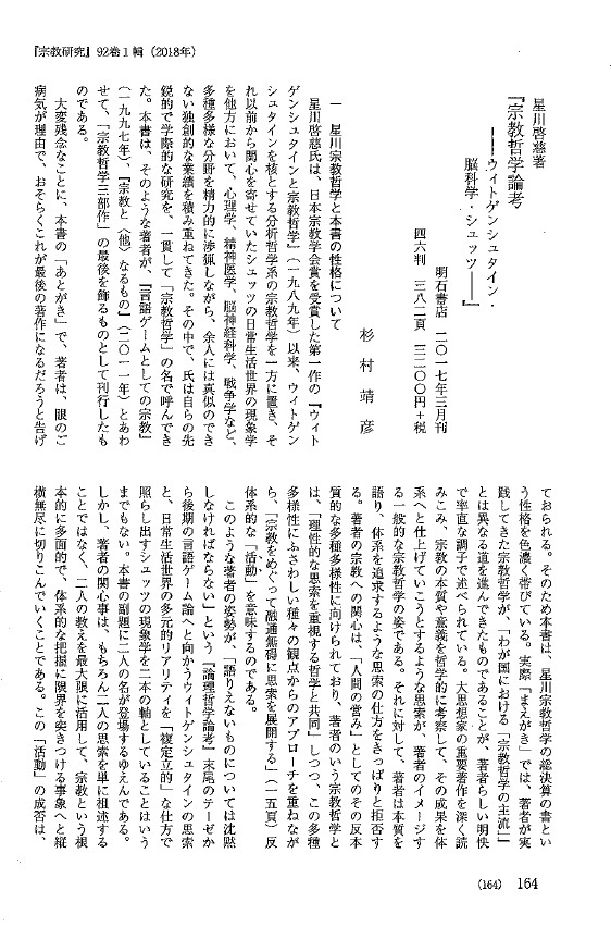 さて、以前にこのブログで、大正大学人文学科 星川啓慈先生の著書『宗教哲学論考――ウィトゲンシュタイン・脳科学・シュッツ』について、学術雑誌『宗教哲学研究』(第35号)に南山大学准教授 佐藤啓介先生の書評が掲載されたことをお伝えいたしました(以前の記事はこちら)。