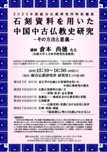 【開催案内】特別講座「石刻資料を用いた 中国中古仏教史研究 -その方法と意義-」