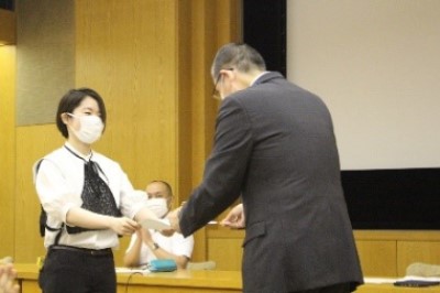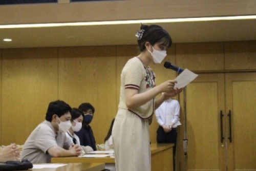 式典では、協定留学生代表として上海大学の唐さんより挨拶がされ、日本語能力の向上だけでなく、日本文化に対する理解促進、日本人学生との交流など、留学生活での経験をお話しいただきました。
