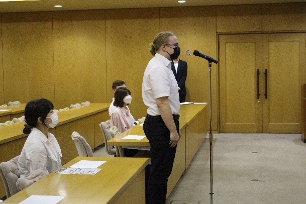 日本語能力の向上のほか、日本文化や日本社会、宗教等、幅広く知識を深め、さらには多くの人々との交流を深めたいと、すらすらと流暢な日本語で、力強いスピーチをしてくれました。