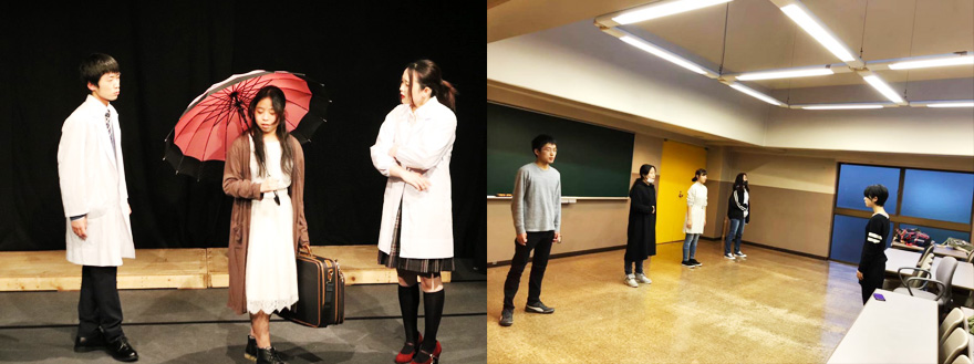 | 主な活動内容 | 普段の活動は準備運動、発声、即興劇を行っています。 公演期間になれば、公演に向けた練習や打ち合わせ等が中心になります。 |
