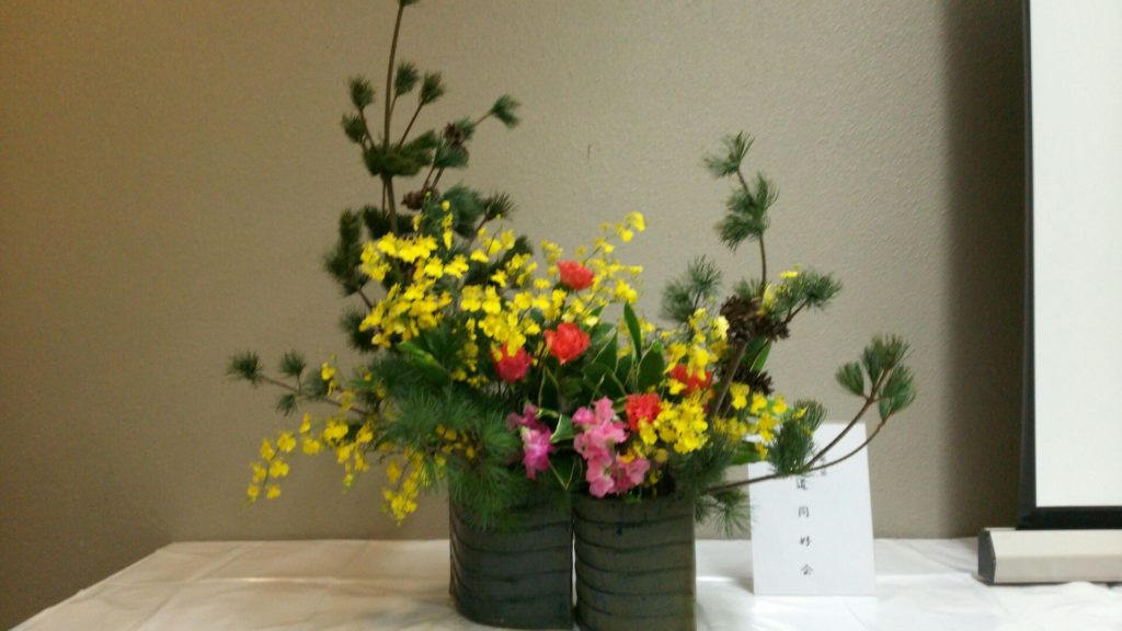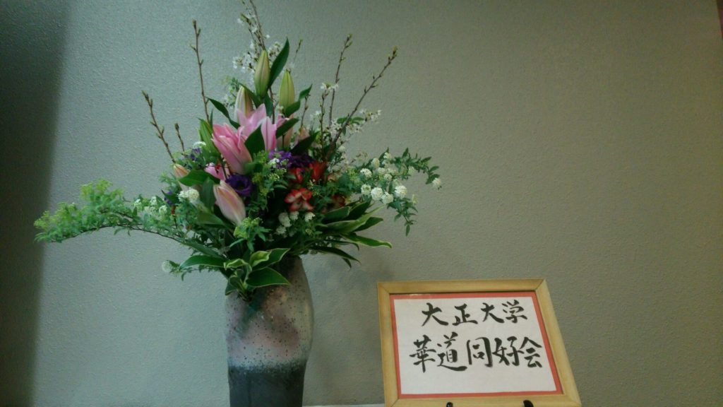 本学での思い出と、新しい路へ進まれる皆様の門出を祝し、華道同好会が心を込めて華を活けます。