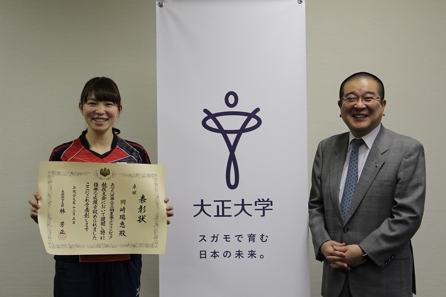 2017年12月5日に、卓球部の川﨑瑞恵さん(仏教学科4年 秋草学園高校出身)が、文部科学大臣表彰を受賞しました。