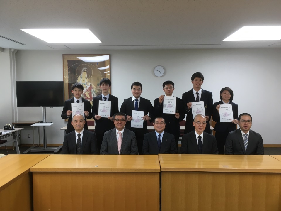 2018年4月4日(水)16時30分より、平成30年度の特別待遇学生の認可証授与式を行いました。