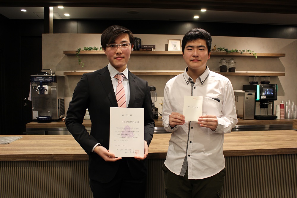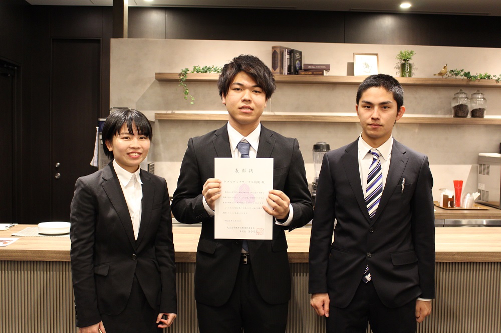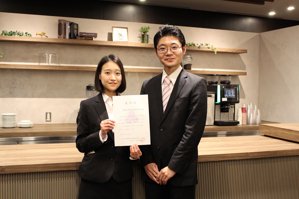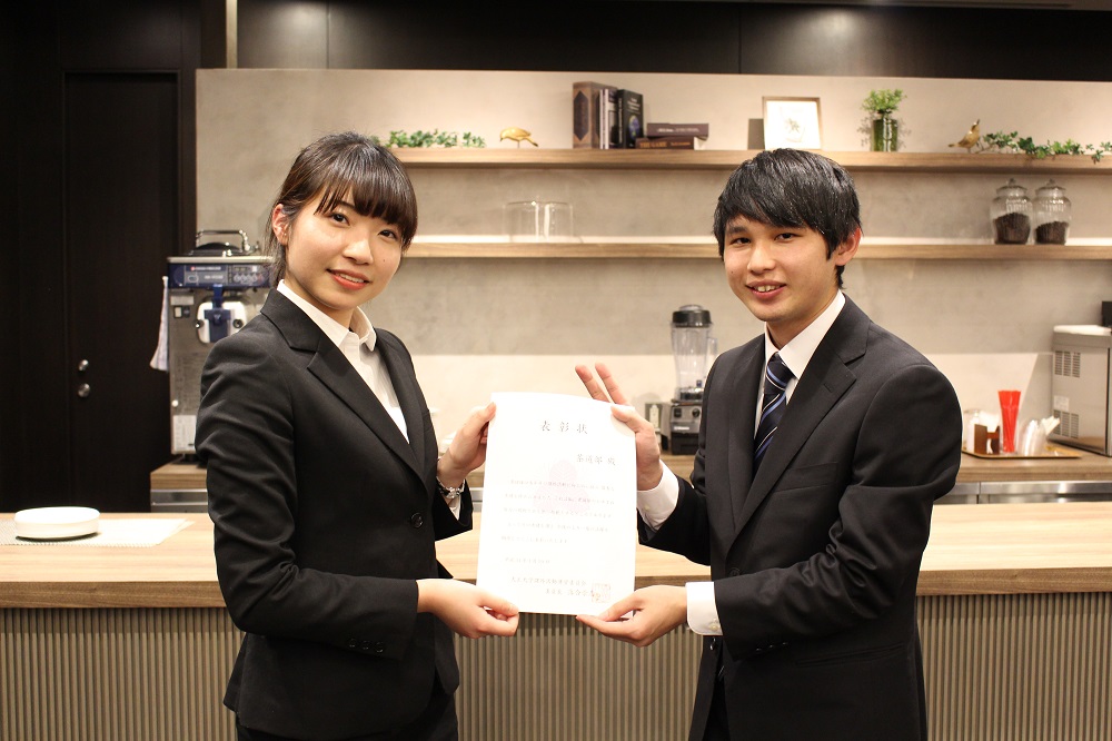続いて、年間を通じて優秀な成績及び活動を行った7団体(硬式野球部・茶道部・バレーボール同好会・大正大学吹奏楽団・ダブルダッチサークル鴇縄・TPRG研究会・鴨台祭実行委員会)に賞状と記念品が授与されました。