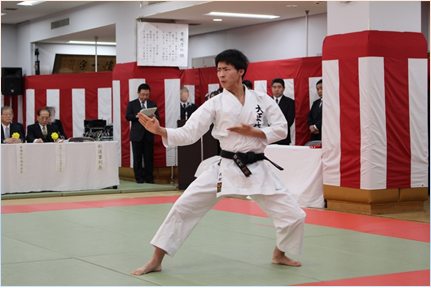 まず、迫力ある形を披露してくれた北村優さん(教育人間学科 1年 拓殖大学紅陵高校出身)