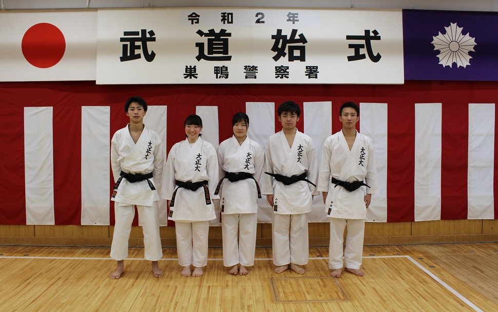 令和2年1月9日(木)巣鴨警察署で行われた『令和2年 武道始式』において、本学空手道部の5名の学生が演武を披露しました。