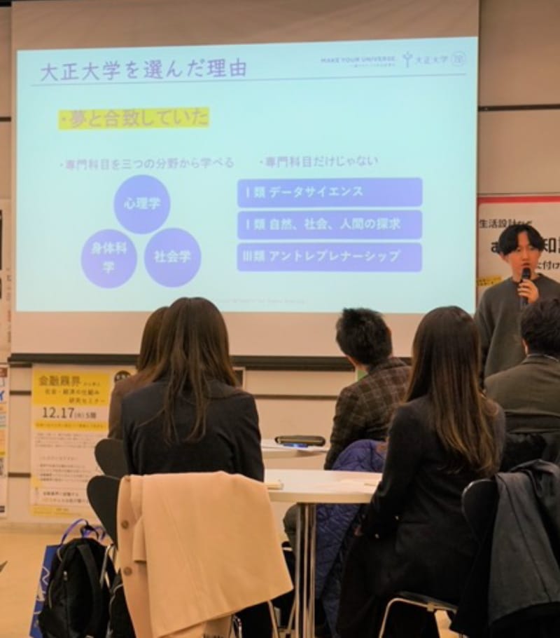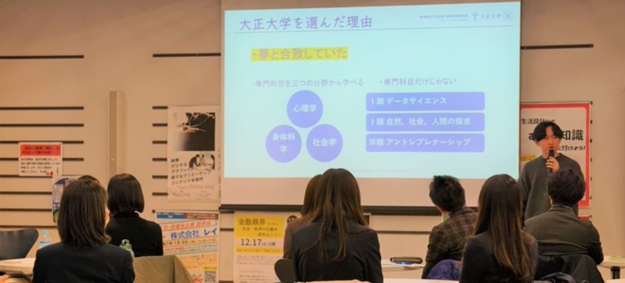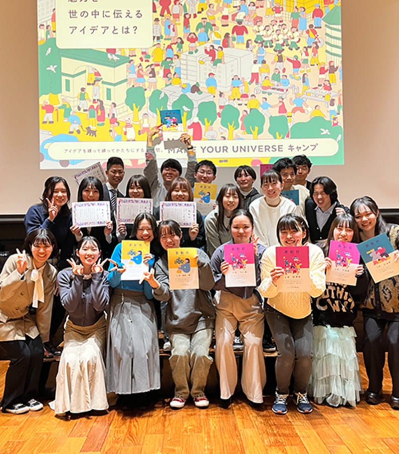 学生や卒業生、教職員、地域住民など学びに関わるすべての人たちが集まり、出会って、時に思わぬかたちで互いの力を引き出し合うことで、まだ見ぬ鮮やかな答えと調和がビッグバンのように生まれていく。そうした価値体系=「一緒だからつくれる世界」を、UNIVERSEと表現し、このUNIVERSITYも、大正大学に関わるあらゆる人たちも、UNIVERSEをつくる存在でありたいという願いを込めました。