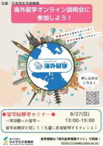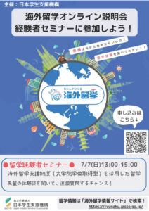 【事前予約制】「2024年度JASSO海外留学オンライン説明会(留学経験者セミナー)」のお知らせ