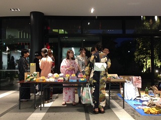 今年は、留学生も浴衣を着て「留学生の駄菓子屋」を出店しました。売れ行きよりも、楽しそうに留学生と大正生がしている姿を見ているだけで嬉しくなりました。