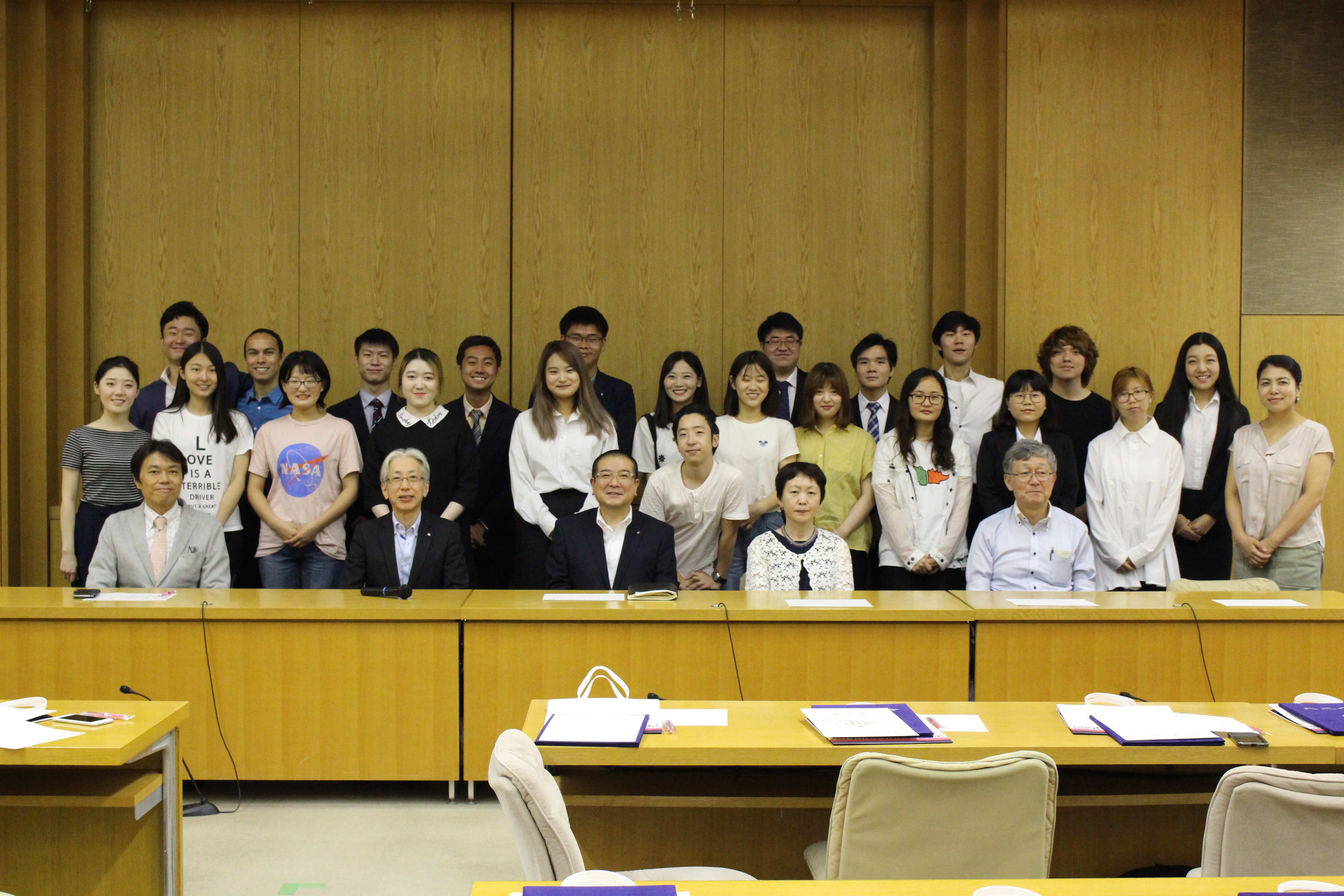 7月26日(水)に「平成29年度 協定留学生、東西大学校日本文化研修生 修了式」が実施されました。今回修了されたのは、昨年9月より1年間の協定留学生(ミュンヘン大学、上海大学、河南大学、東国大学校、金剛大学校)の10名と今年4月より4ヵ月間の東西大学校日本文化研修生の12名の学生たち計22名です。