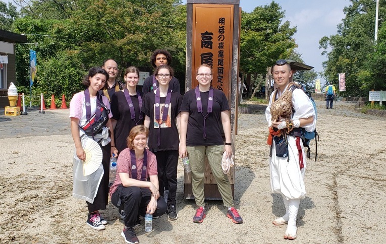 登頂中は「六根清浄」と繰り返し唱え、自身の六根(視覚、聴覚、嗅覚、味覚、触覚、意識)を清めました。当日は気温が高く、なかなか過酷な登頂となりましたが、留学生全員無事に山頂へとたどり着くことができました。