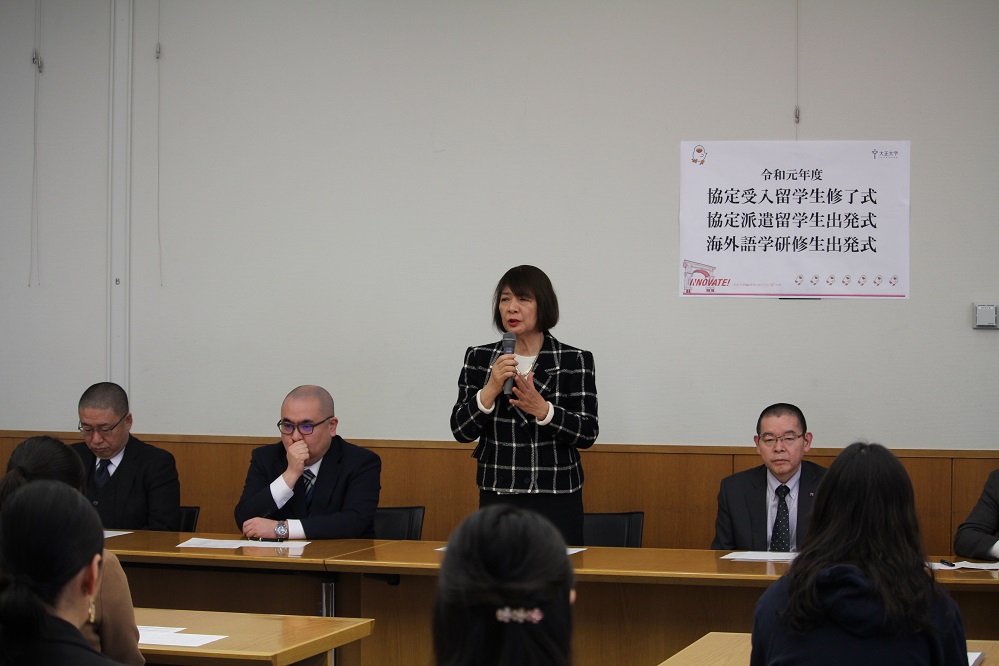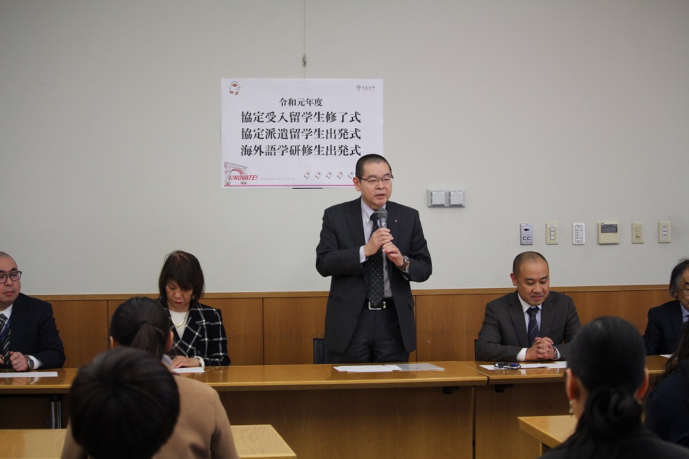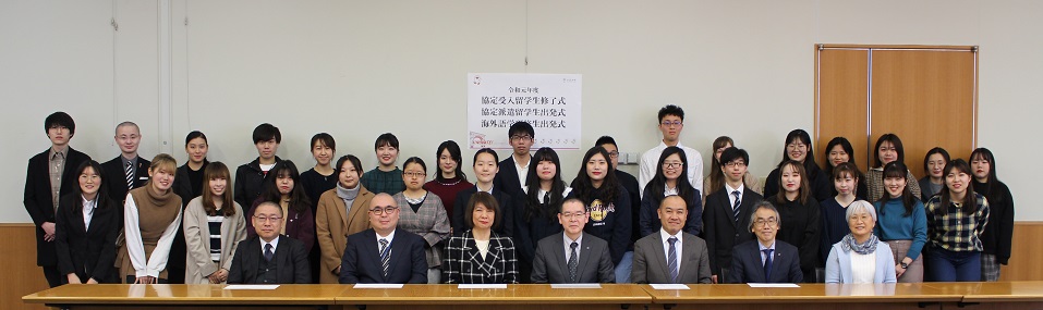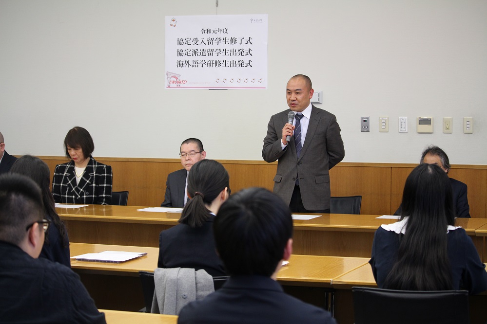 協定受入留学生修了式、協定派遣学生出発式、海外語学研修生出発式が執り行われました