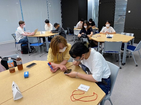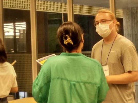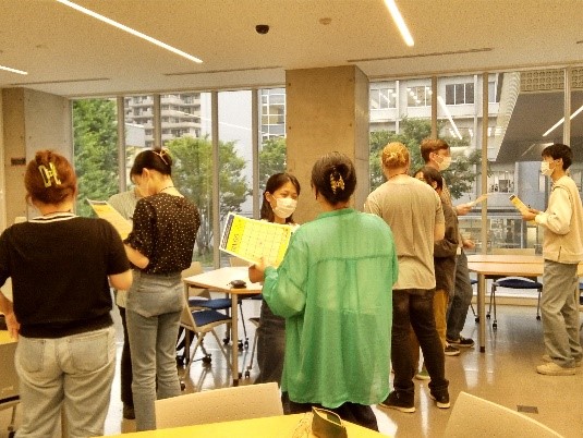 友達ビンゴは、自身の趣味や特徴をビンゴカードに記入したうえで、他の参加者との共通点を探し、共通点のビンゴを目指すレクリエーションです。国籍や育った環境が異なっていても、参加者それぞれが多くの共通点を見つけることができました!