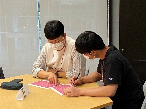 第2回目の交流会では、“友達ビンゴ”“お絵描き伝言ゲーム”という2つのレクリエーションを通じて、交流を深めました。