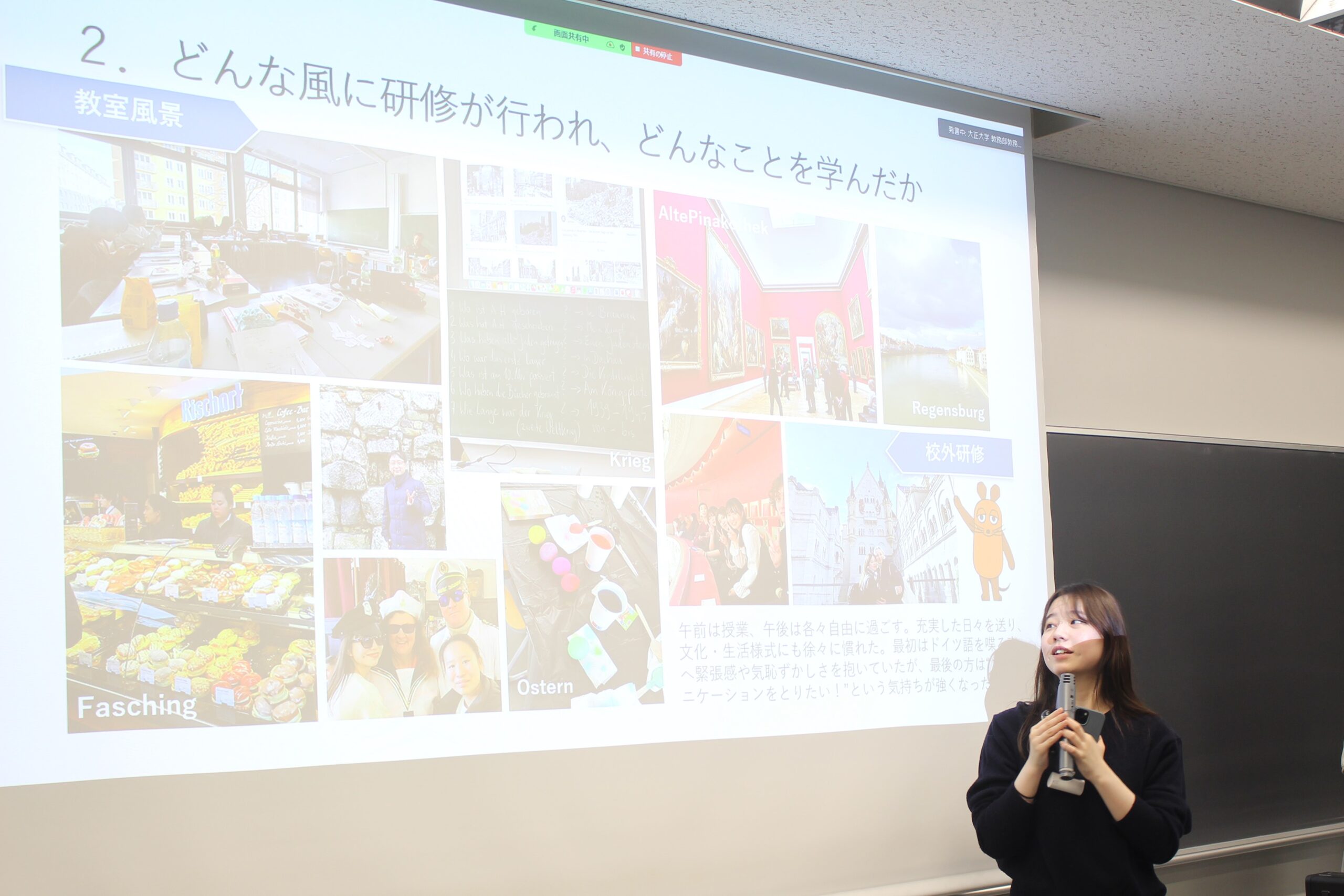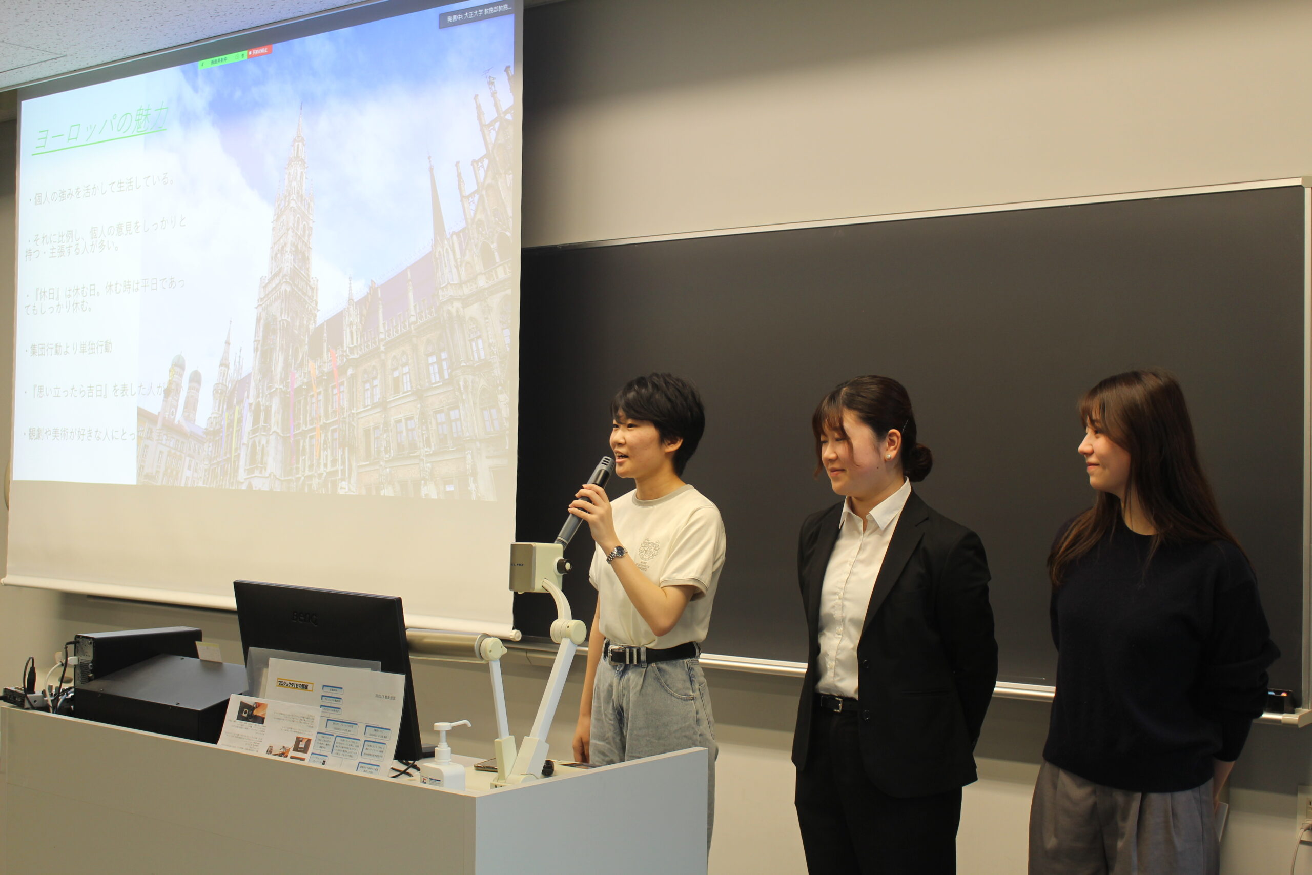 ドイツ・ミュンヘン大学研修チームは、日本との比較を通じて異文化理解を深めたことや、ヨーロッパの魅力を報告しました。
