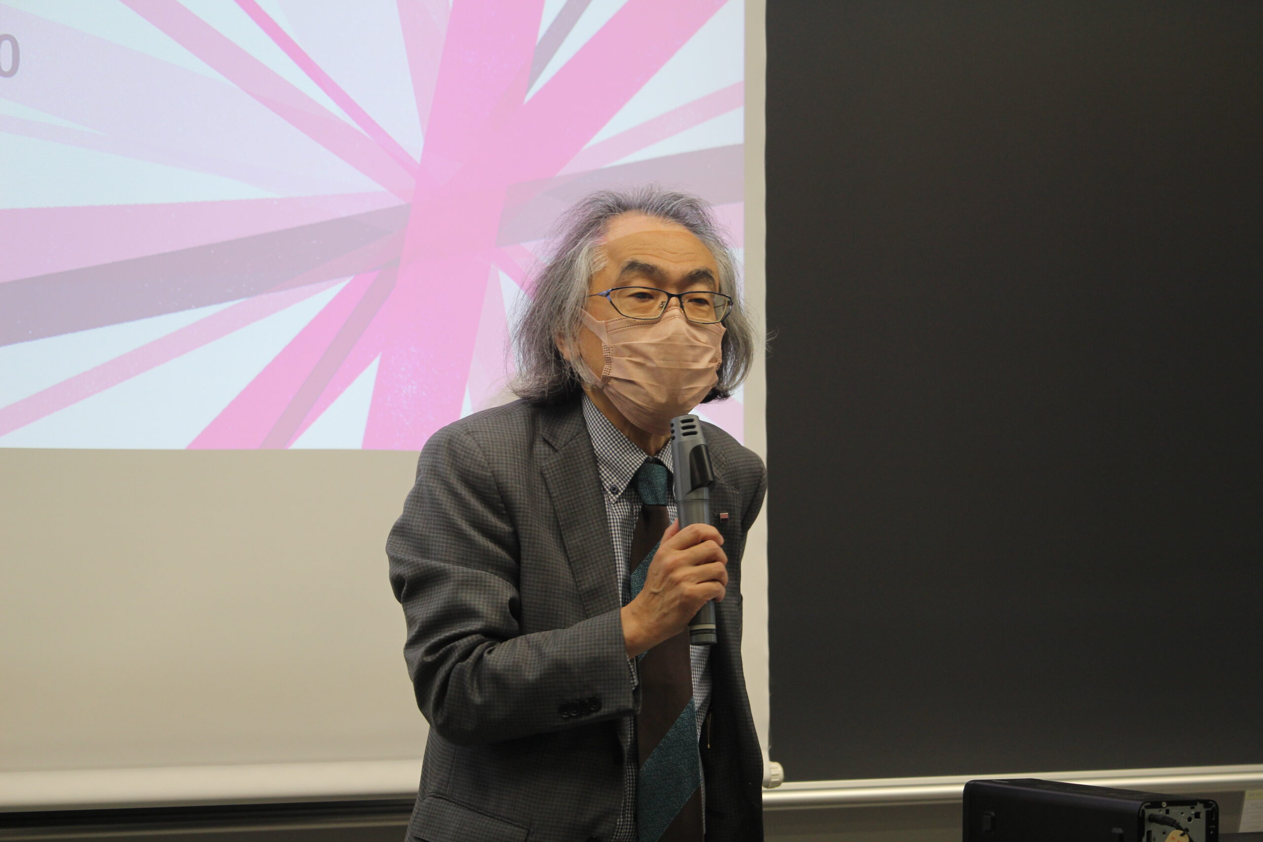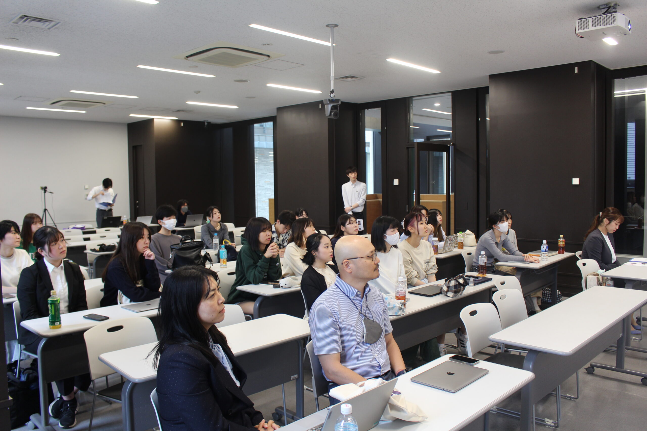 冒頭では学長補佐で教務部長である小林先生からの挨拶があり、学生の発表後はミュンヘン大学研修へ引率いただいた米崎先生や国際交流委員会委員長の倉西先生、そして学長補佐の野村島先生から激励の言葉が贈られました。