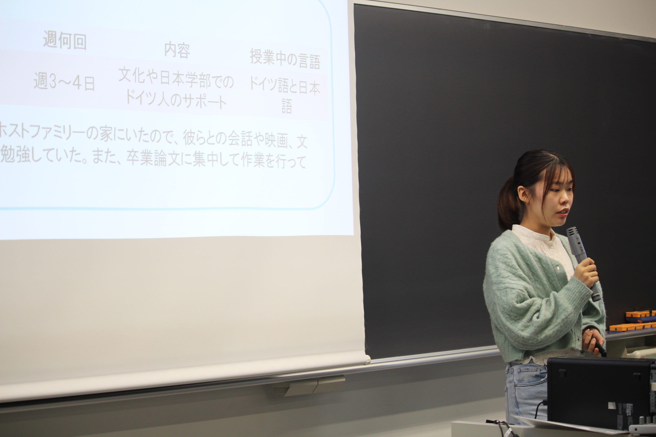 ドイツ・ミュンヘン大学への協定留学を経験した原さんは、ドイツと日本の移民問題の違いに着目し、卒業論文のテーマとして採する意向を示しました。