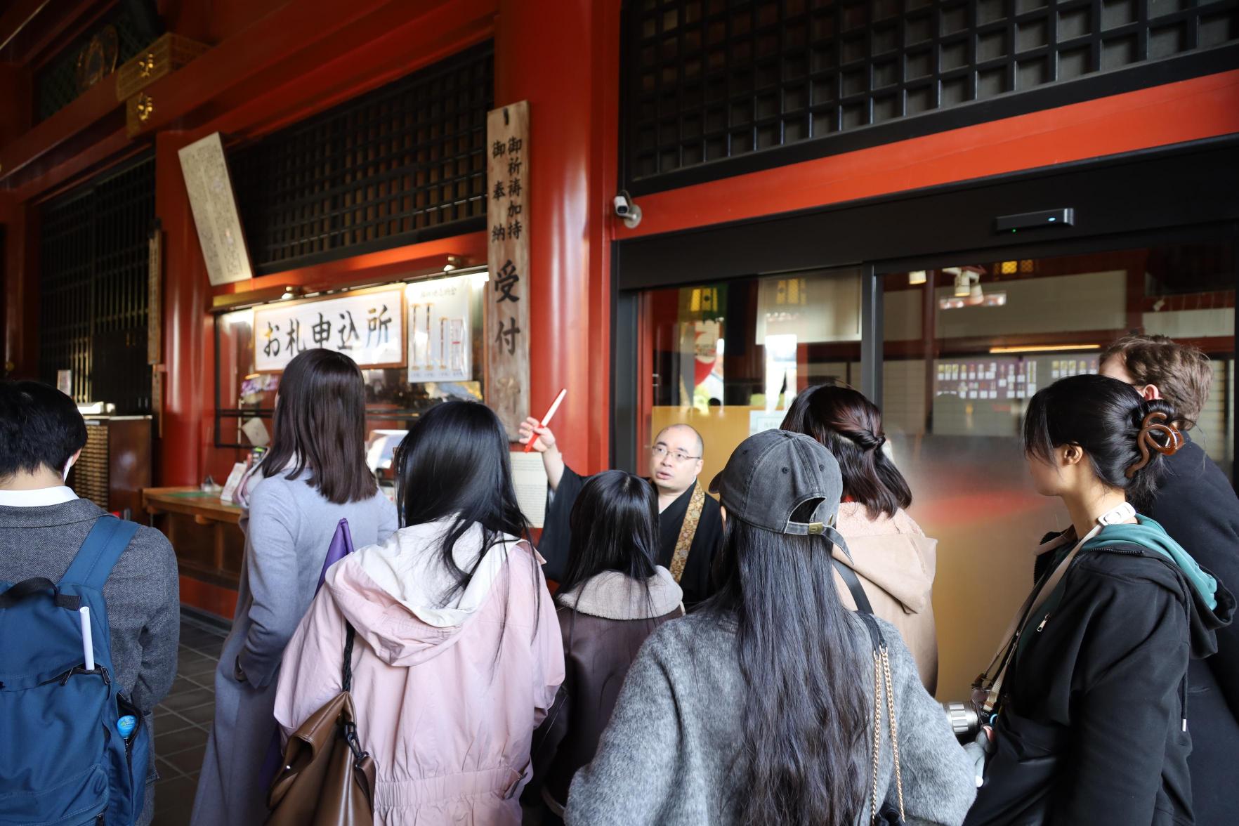 浅草寺や浅草周辺の歴史的背景について、丁寧で分かりやすいご説明をいただきながら、建築や展示物を拝見し、参加した学生たちは浅草・浅草寺の歴史や文化への理解を一層深めることができました。
