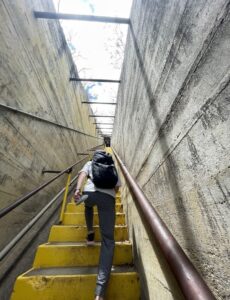 登っている時は思ったより険しい道でした。ぼこぼこの道を進み、階段を駆け巡りました。汗もかいてきましたが、今日は曇っていたからまだよかったです。そして途中、二手に分かれるところがあります。1つはキツイけど短いルート、もう1つは長いけど景色を眺めながら登れるルートです。そして私はなぜか階段を選んでしまいました。階段は急すぎて落ちるのではないかと思うくらいでした。ほぼ、絶壁を上っていました。今回で分かりましたが、本当に景色を眺めるルートをお勧めします。帰りは景色のルートを通って帰りましたが、そこまで道のりが長くなるわけではありません。