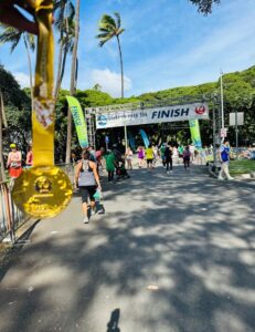 また12月にはホノルルマラソンにも出場しました。ホノルルマラソンは時間制限がなく家族連れからお年寄りの方々まで誰でも参加できて、みなさん自分のペースで走って楽しめるマラソンでした。僕自身も半分走って半分歩いてと言った感じで、のんびりと完走しました。