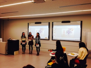 上記の写真は、河南大学生による大学紹介と開封市の名勝を紹介している様子