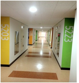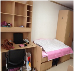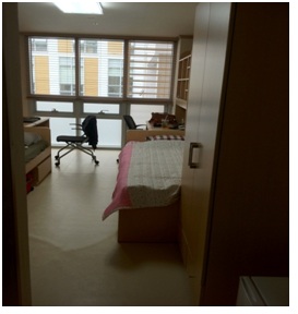 9階まであり、2階から9階まで全て学生たちの部屋になっています。ほとんどの部屋が二人部屋です。私の部屋は5階でした。