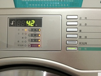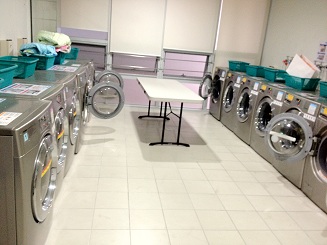 入寮してまず最初に大変だったことは、洗濯です。入寮できるのは9月1日からですが、留学生のオリエンテーションが8月30日にあったので、私は29日に韓国へ来ました。入寮したときにはすでに三日間分の洗濯物がたまっていたため、洗濯をしたくて洗濯室に行きました。ところが、やはりそこも韓国語…。洗濯室には洗濯機、乾燥機、洗濯機と乾燥機の料金を支払う機械があります。洗濯と乾燥に、それぞれ1回1000ウォン(日本円で約80円)ずつかかります。料金を支払う機械には、英語の説明の紙が貼ってあったので、なんとか操作をすることができました。しかし、洗濯機と乾燥機は韓国語のみ…。私は韓国語をそれなりに勉強していましたが、まずは日常会話で必要な韓国語を勉強するので、洗濯に関する単語など一切知りません。そのため携帯電話の翻訳機を使って、操作のボタンに書いてある韓国語を一つずつ訳して、ようやく理解することができました。(本当は壁に英語の説明があったのですが、韓国語しかない!とパニックに陥った私は気づきませんでした…)その後、私と同じく今学期から新しく留学生としてやってきた、同じ寮に住む日本人3人に洗濯機の使い方を教えてあげました。