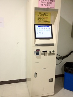 ちなみに、洗濯室とは別のところにアイロンが置いてある部屋があり、そこで無料でアイロンをかけられます。そのアイロンが、人が近付くと勝手に電源が入ります。最初はそれを知って感動しましたが、使っている間に少し離れるだけで電源が切れるので、逆にちょっと面倒です。そのアイロンが置いてある部屋に、洗剤の自動販売機もあります。洗剤と柔軟剤が一緒になったもので、一つ500ウォンです。この洗剤の量は洗濯二回分です。この二回分というのもわからなくて、買ったあとに近くにいた韓国人の女の子に聞いて、わかりました。これも大変でした…。