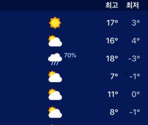①まず、私が書きたいのはソウルの寒さについてです。冬の韓国は全体的に寒いですが、ソウルは韓国の北部のほうに位置するので特に寒いです。どのくらい寒いかというと、11月にも関わらず最低気温がマイナス3℃、4℃になる日が増えてきます。その時に必要なのが、「(ロング)ペディン」というものです。日本語だと「ダウンジャケット」というと思います。(すみません、よくわかりません。)それを着ると本当に暖かいです。私もこれを着た瞬間、驚くほど暖かくて驚きました。ネットや、韓国に来れば服屋には、たいていこの時期は売っています。値段が安すぎると、生地が薄いので、7000円~が良いかなと思います!普段2000円以内ですべてを収めている、私からするとすごく高級な買い物でしたが、損はしていません!むしろ、買って本当に正解でした!秋~冬に韓国へ来る際はこれを着ることをお勧めします。いや、着てください。寒いです。