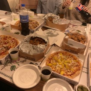 ピザと、チキンです。思った以上に量が多かった記憶があります…。