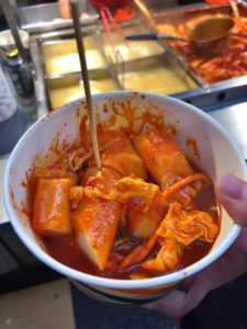 こちらは、カントン市場のイガネトッポッキで食べたトッポッキです。思った以上に量が多くてすぐにおなかがいっぱいになりました。