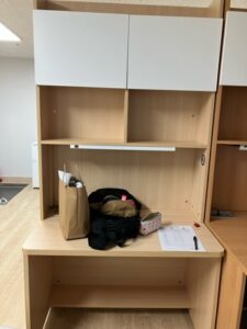 部屋に入り、備品等を確認してから事務室にチェックシートを提出して、入寮手続きは終了しました。
