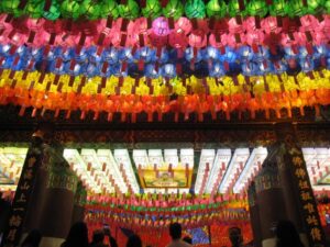東国大学から조계사まで提灯を持って練り歩いたのですが、それがまた夜になると綺麗で素敵な光景でした。
