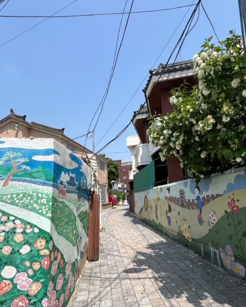 水原華城周辺の行宮洞の周りには壁画村があって、街中に上の写真のような壁画がたくさんあります。