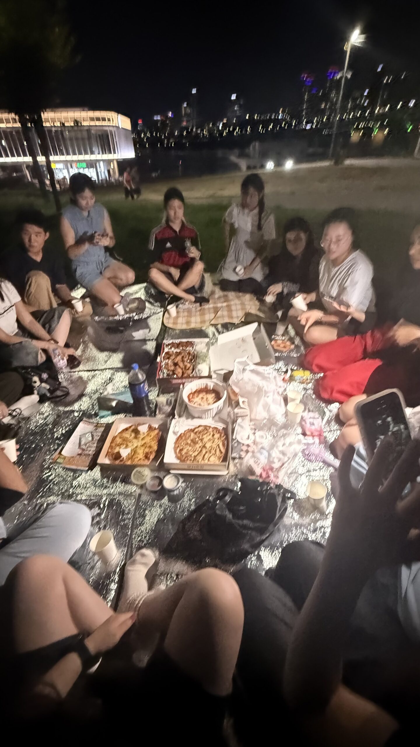 8月のサークルのイベントデーはハンガン公園でのピクニックでした。外でのんびりとおしゃべりをしながら、ピザやチキン、トッポギを食べたりしました。また、ハンガン沿いをサイクリングしたのですが、夏の暑さも少し落ち着いてきていて、夕方には涼しい風が気持ちよかったです。日が沈む時間も早くなり、季節が少しずつ秋に向かっていることを肌で感じました。