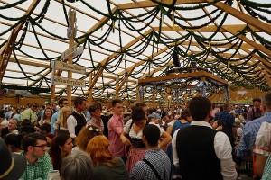 「1つの共通点」発見のキッカケは、香水のCMです。私は、毎朝7時30分に寮の共同エリアにあるテレビでドイツ語のlisteningの為に簡単なニュース番組と子供向け番組を見ています。その日は、その合間に一本の香水のCMがありました。そのキャッチフレーズが、「オクトーバーフェスト!ビール!バイエルンの香りで華やかに飾る」というものでした。思わず、「…バイエルンの香りって何だ!?」と声に出てしまうほど驚きました。しかし、この驚きの後も、「バイエルンの」という言葉を聴く機会が幾度とあります。例えば、語学学校の授業で「ドイツの文化」を取り扱った際も、先生は「これはバイエルンの文化」「バイエルンでは〜だ」というような言い方を度々していました。 この「バイエルンの」という言い回しがミュンヘンにおいては普通なのだと解ったのは、以前お世話になったホームステイ先のヘルガさんと一緒に、オクトーバーフェスタに行った時です。